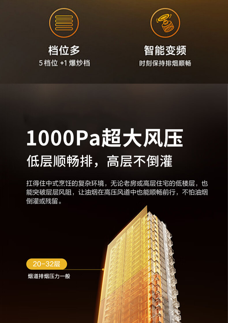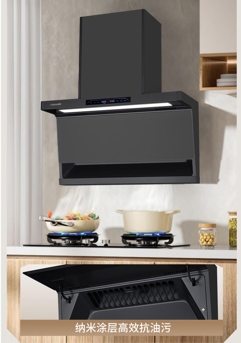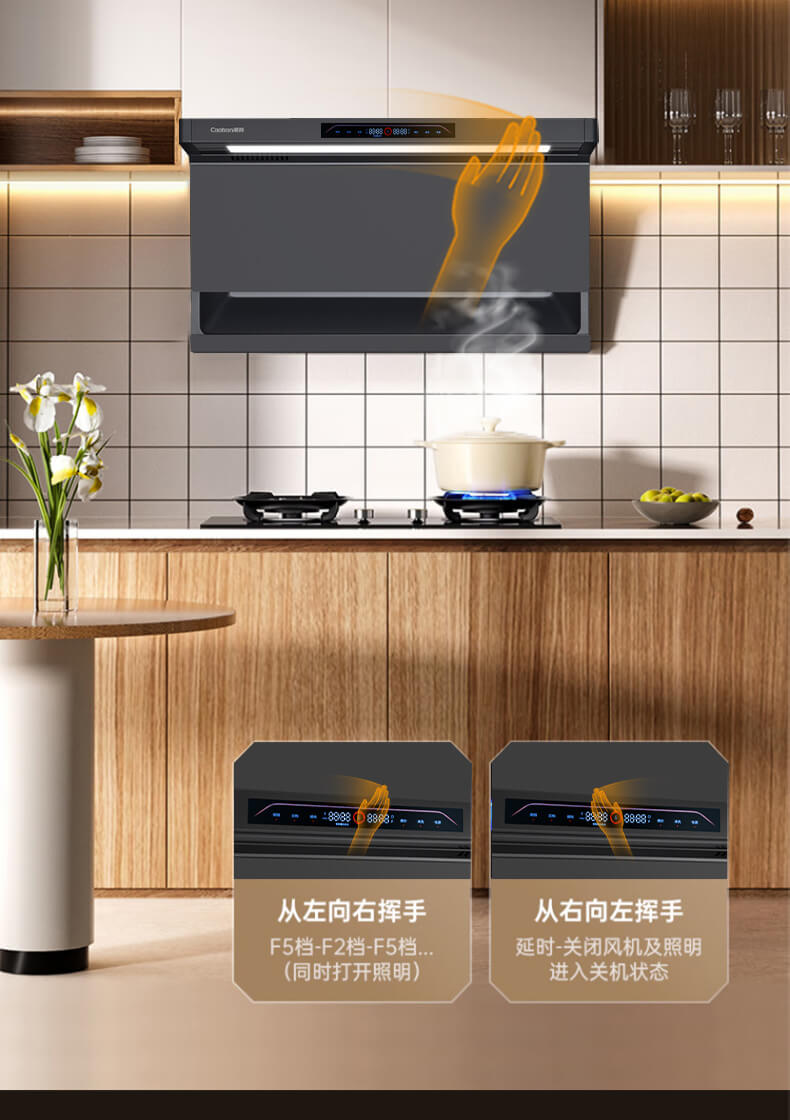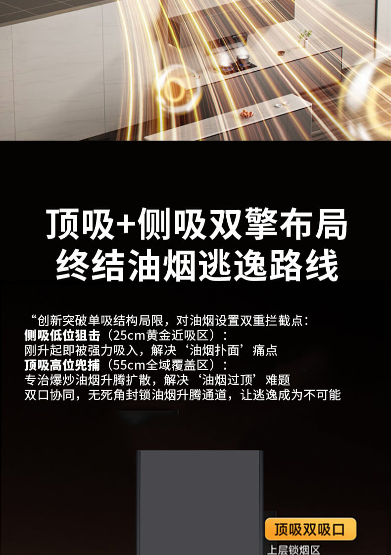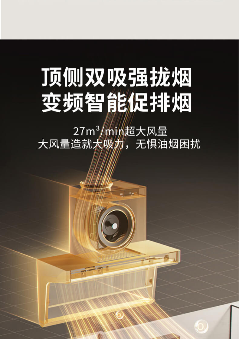 疏水疏油抗刮花,27方頂側雙吸,1000Pa變頻大風壓,自清洗,揮手智控