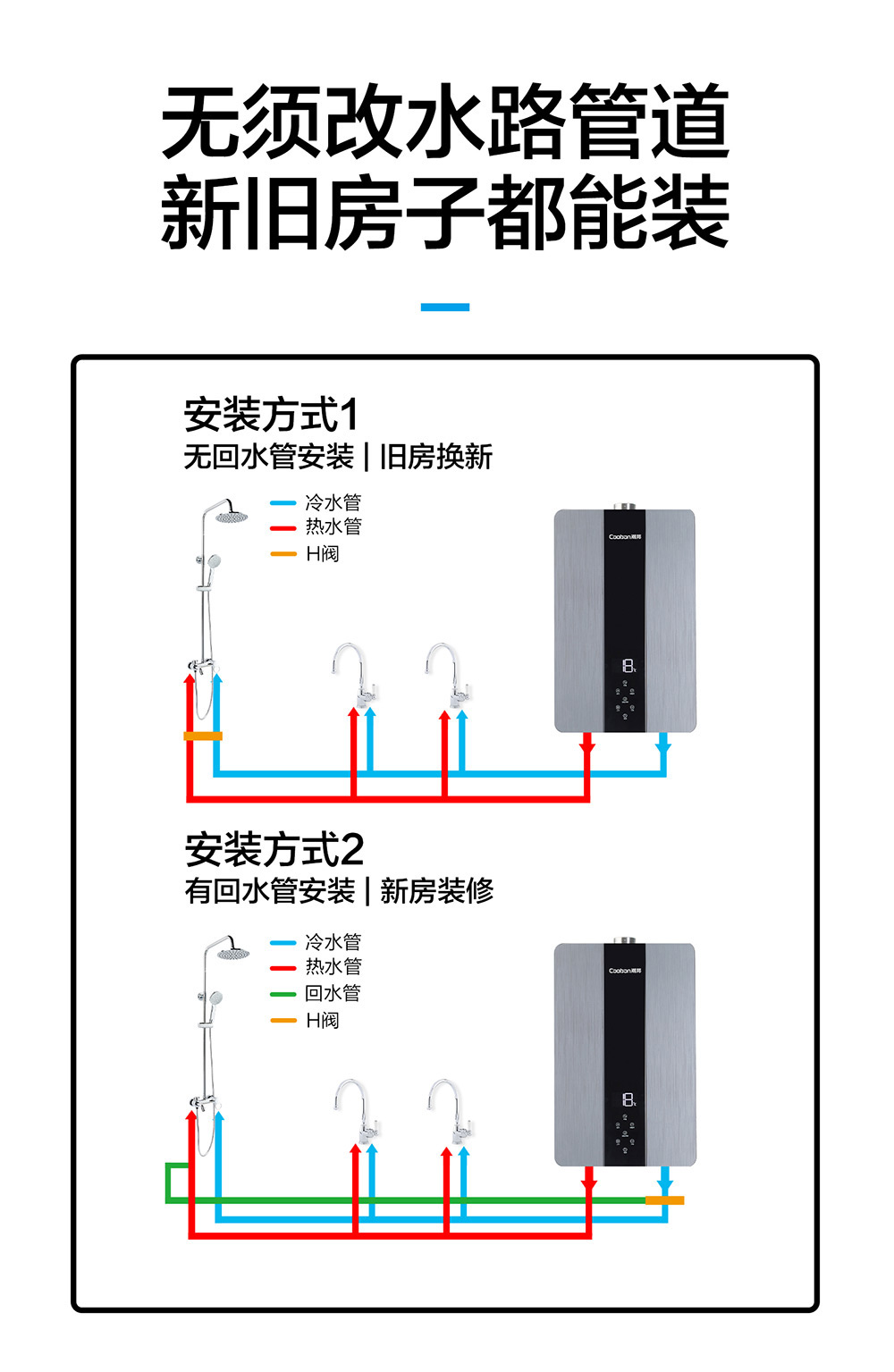 零冷水,智能恒溫,低水壓啟動。